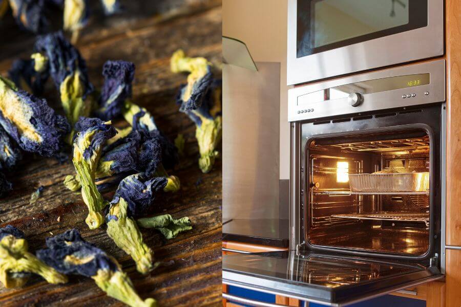 Sử dụng lò nướng làm khô hoa đậu biếc