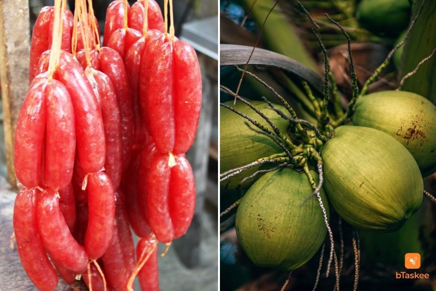 Cách 1: Luộc lạp xưởng tươi với nước dừa xiêm để bảo quản