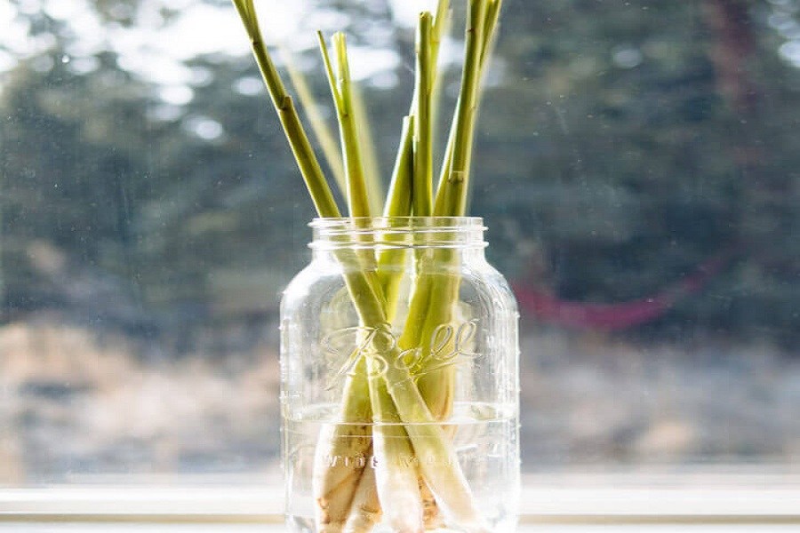 Mẹo bỏ đường vào nước ngâm sẽ giúp sả tươi lâu hơn. Thường xuyên kiểm tra để châm thêm nước và đường khi nước trong ly cạn đi.