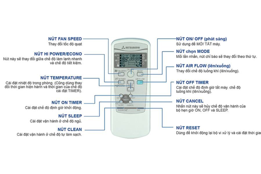 Ý nghĩa các nút trên điều khiển điều hòa Mitsubishi