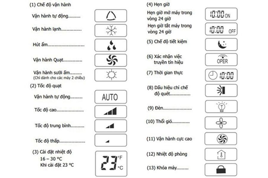 Ý nghĩa các nút trên điều khiển điều hòa Nagakawa