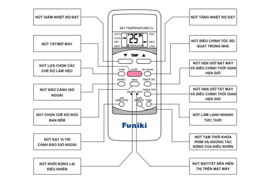 Ý nghĩa các nút trên điều khiển điều hòa Funiki