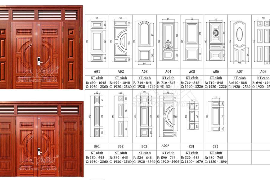 - Cửa gỗ 2 cánh: