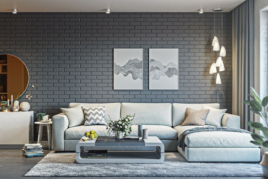 Bạn có thể lựa sofa màu tối giản, nhấn bằng những phụ kiện đi kèm khác màu. Chẳng hạn như gối, kệ,… Cách bố trí sofa này sẽ giúp không gian của bạn thêm ấn tượng.