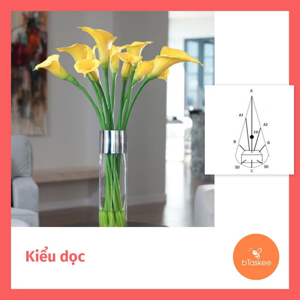 Cắm hoa theo chiều dọc là kiểu cắm cao và chiều rộng nhỏ. Bạn có thể bắt gặp kiểu cắm hoa này ở các đám cưới hoặc bạn có thể trang trí góc nhà với kiểu cắm hoa này đấy.