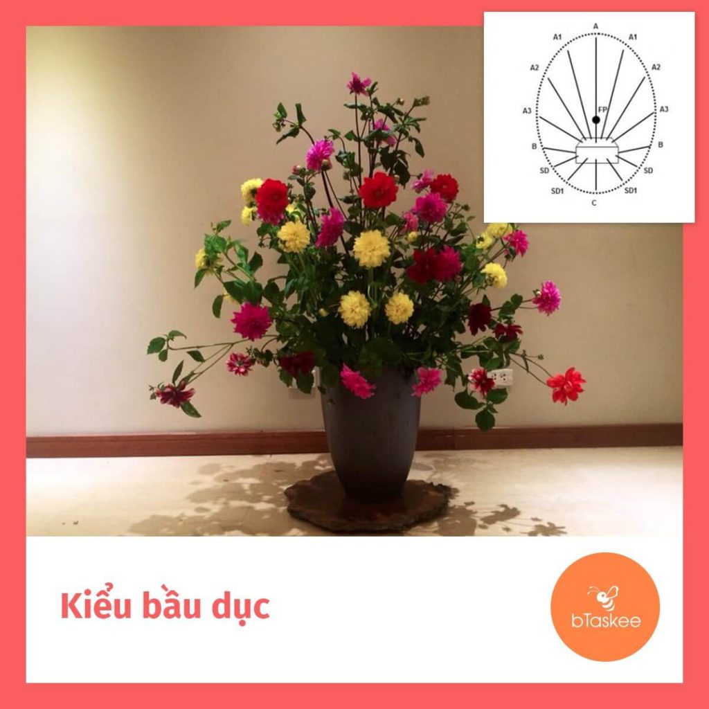 Kiểu cắm hoa đẹp theo hình bầu dục