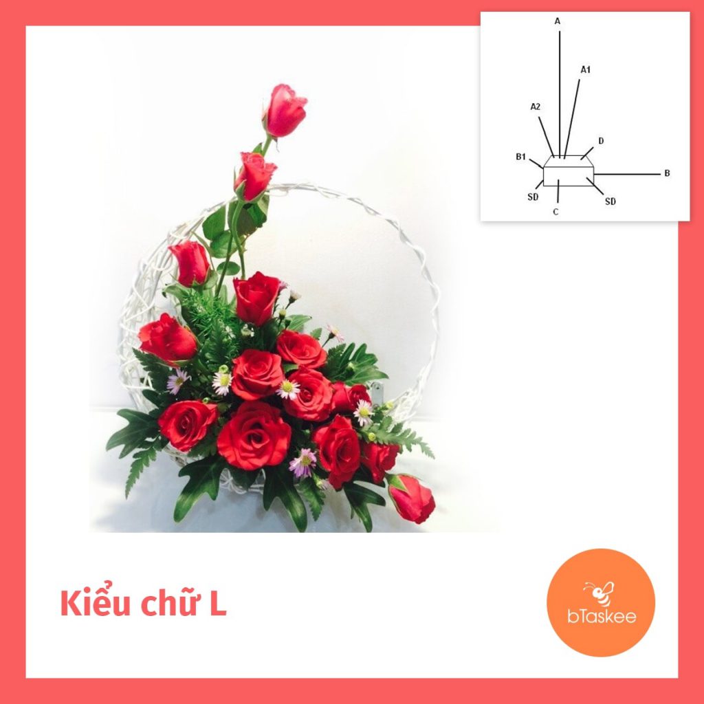 Giống như tên gọi, kiểu cắm hoa này có hình dạng chữ L, vì nó không đối xứng nên khi cắm hoa phải sắp xếp khéo léo để tạo sự cân bằng.