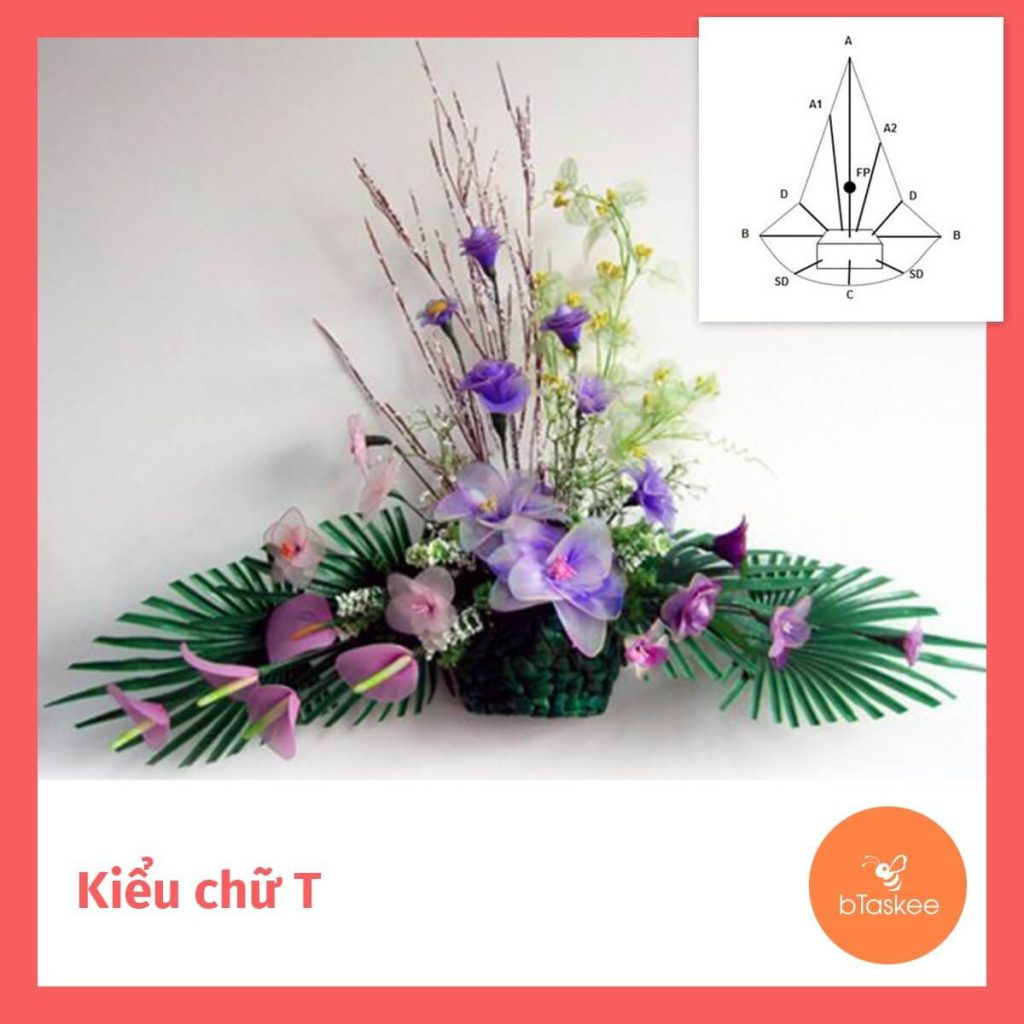 Kiểu cắm hoa hình chữ T lộn ngược cũng là cách cắm hoa đẹp bạn nên học. Hoa sẽ được phủ trên 3 mặt, chiều dài một mặt có đôi chút khác biệt so với 2 mặt kia. Kiểu này thường được sử dụng trong các dịp lễ Tết quan trọng.