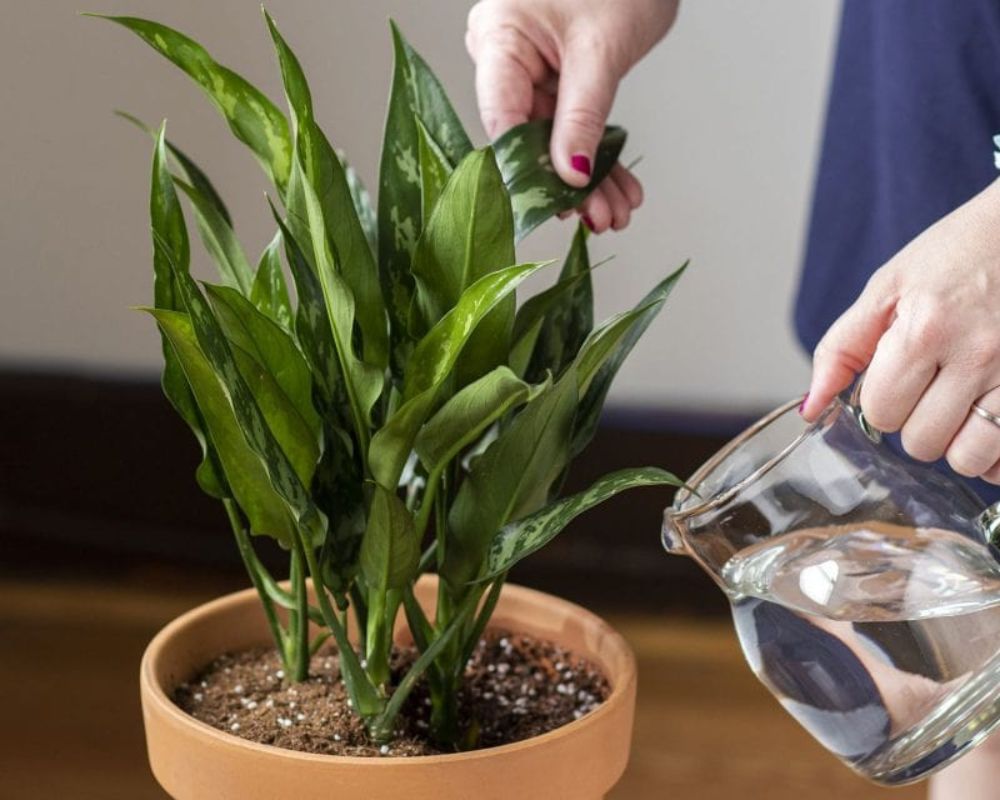 Là loại cây ưa ẩm, nếu trồng ngoài trời thì cần tưới nước mỗi ngày vào sáng sớm hoặc chiều muộn. Nếu trồng trong nhà, mỗi tuần tưới 2 lần để đủ làm ẩm đất. Không nên tưới nước quá nhiều để tránh làm ngập úng, thối rễ.