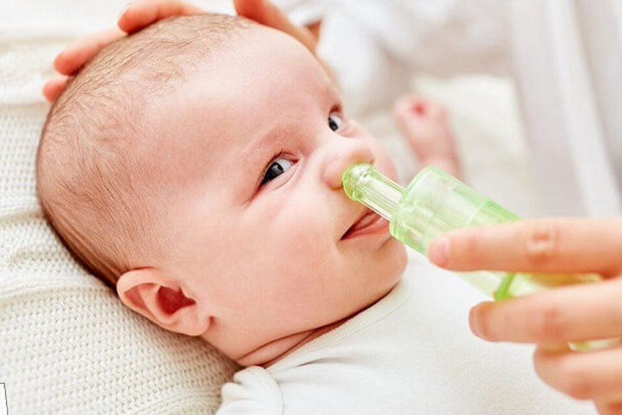 Phụ huynh nên vệ sinh, rửa mũi và súc họng cho trẻ bằng nước muối sinh lý thường xuyên. Nếu mũi của trẻ có chứa nhiều dịch mũi và đặc thì có thể sử dụng dụng cụ để hút ra để cho trẻ cảm thấy thoải mái hơn nhưng tuyệt đối không nên lạm dụng quá mức vì có thể gây tổn thương mũi của trẻ.