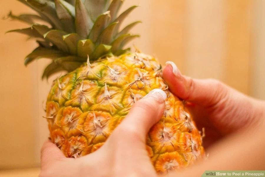 Những trái dứa tươi, vừa chín tới khi dùng tay bóp sẽ không quá cứng và cảm nhận được độ đàn hồi của vỏ quả dứa.