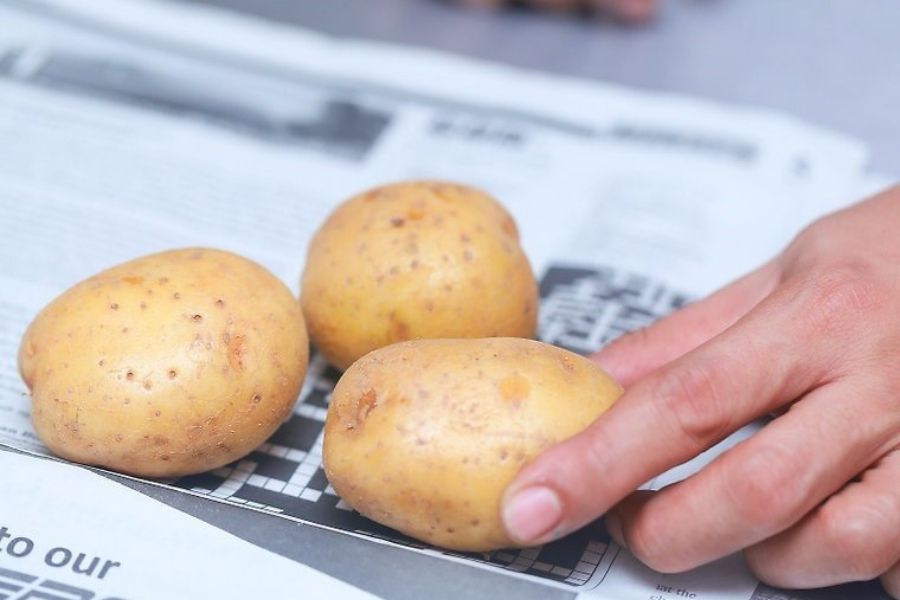 Chỉ mua về nhà, những củ khoai tây cầm chắc tay, nặng, vỏ trơn nhẵn, lành lặn, không có chấm, sâu, mắt đen trên vỏ, không bị thối rữa, có nước chảy ra ngoài.
