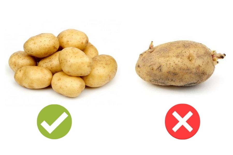 Một điều quan trọng khi chọn khoai tây là phải kiểm tra kỹ xem củ có mọc mầm hay không. Nếu khoai đã mọc mầm thì tuyệt đối không sử dụng vì lúc này khoai chứa rất nhiều độc tố có hại cho sức khỏe.
