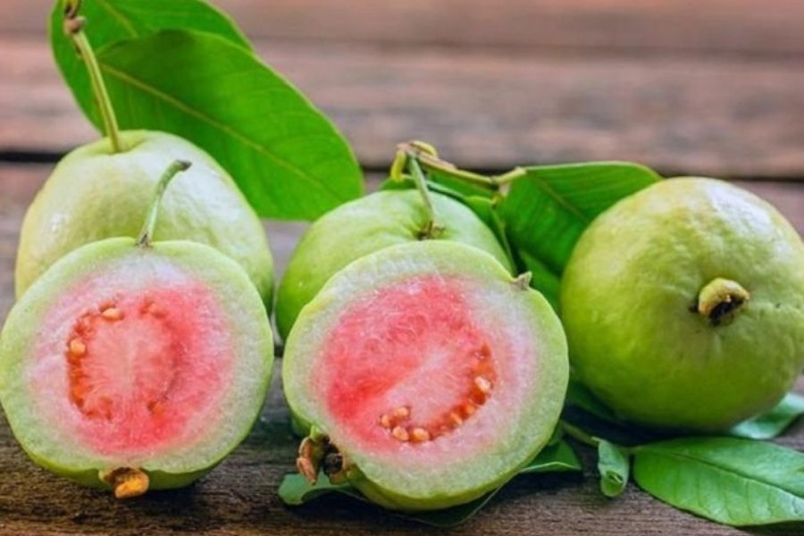 Phần lá trên cuống phải có màu xanh đâm, còn tươi, không xuất hiện các vết đen, hay úa vàng. Đây là những quả ổi tươi, thịt còn nhiều nước, giòn ngọt.