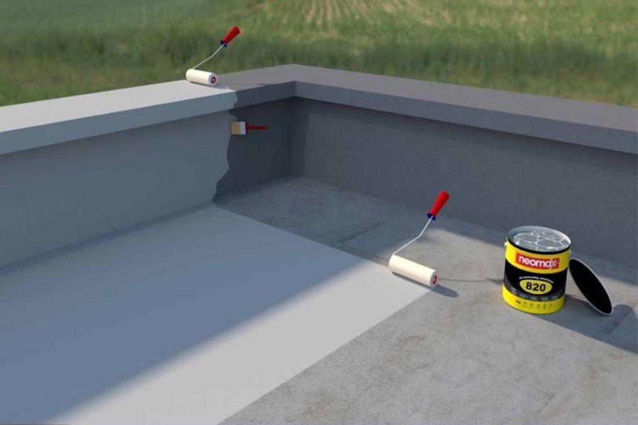 - Bước 4: Sau đó, bạn dùng chổi hoặc bay trát để phủ hỗn hợp này lên bề mặt cần chống thấm. Lưu ý bạn nên phủ sao cho đều kín toàn bộ bề mặt, không nên để lại lỗ kim. Bạn nên phủ 2 lớp, mỗi lớp dày khoảng 1mm để đạt được hiệu quả tốt nhất nhé.