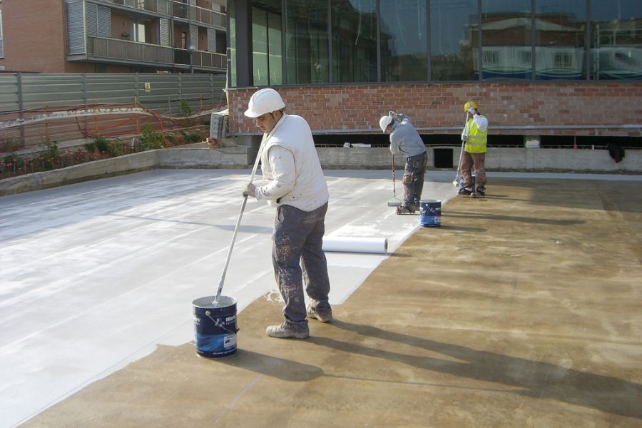 - Bước 1: Bạn thực hiện quét lớp tạo dính lên bề mặt sân thượng. Bạn có thể sử dụng lăn sơn để quá trình quét này được dễ dàng hơn. Bạn cần đảm bảo sao cho lớp dính được dàn mỏng, đều, bao phủ kín bề mặt cần chống thấm.