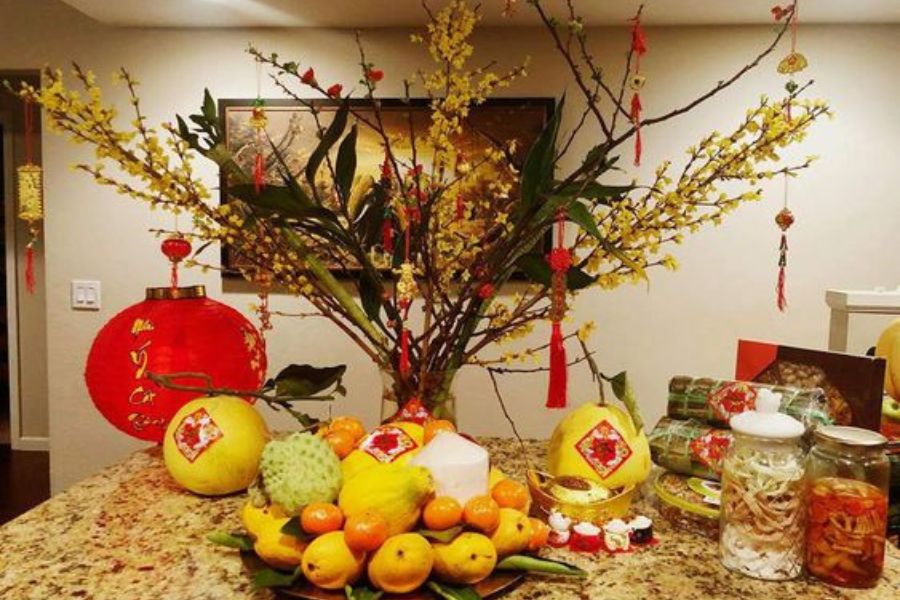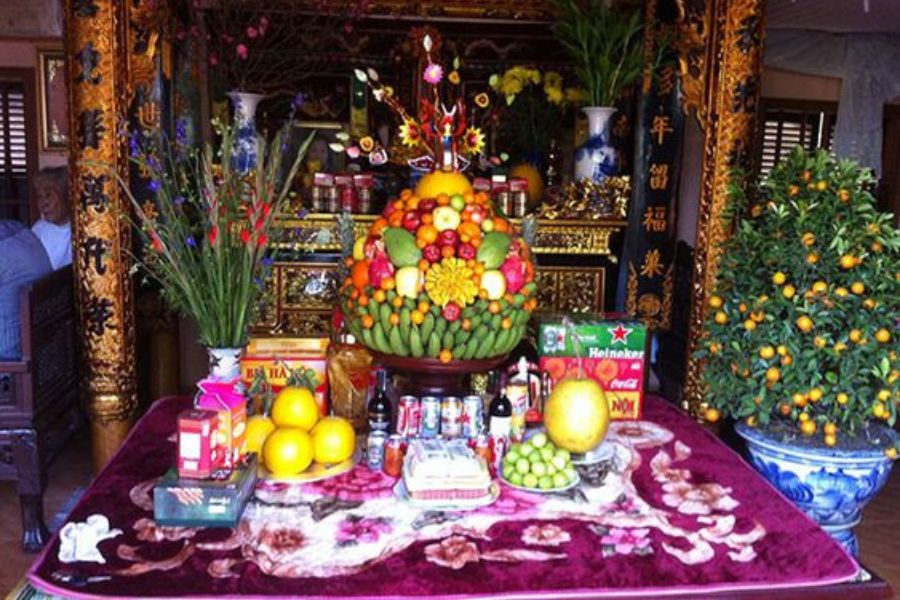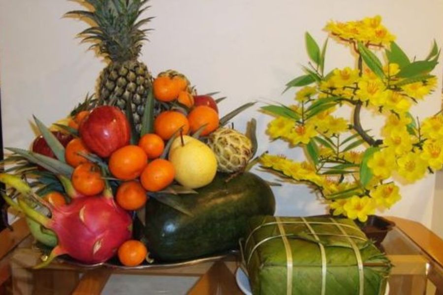 Thường sẽ có: bánh chưng, bánh tét, trái cây.