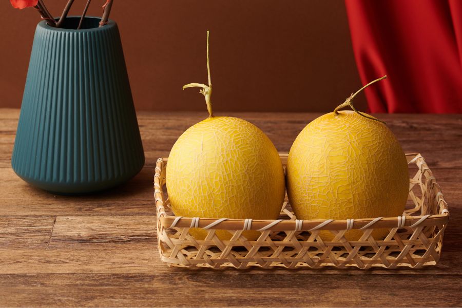 - Hai quả dưa hấu vỏ xanh ruột đỏ: Biểu tượng cho sự may mắn, phát tài phát lộc.