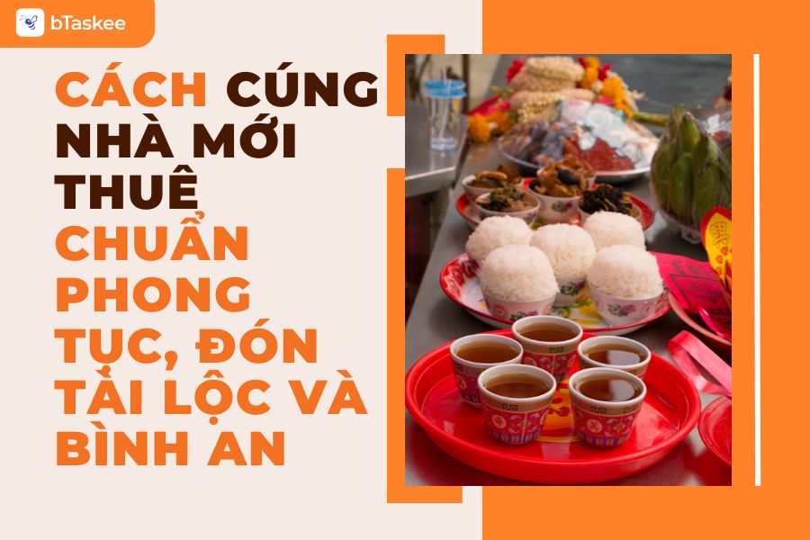 Trong bài viết này, bTaskee sẽ hướng dẫn cách cúng nhà mới thuê, bao gồm quy trình cúng, mâm cúng cần chuẩn bị, cũng như các lễ vật cần thiết. Đồng thời chia sẻ những lưu ý khi cúng để đảm bảo lễ cúng diễn ra trang trọng, thành kính và phù hợp với phong tục tập quán, giúp gia chủ khởi đầu cuộc sống mới một cách tốt đẹp.