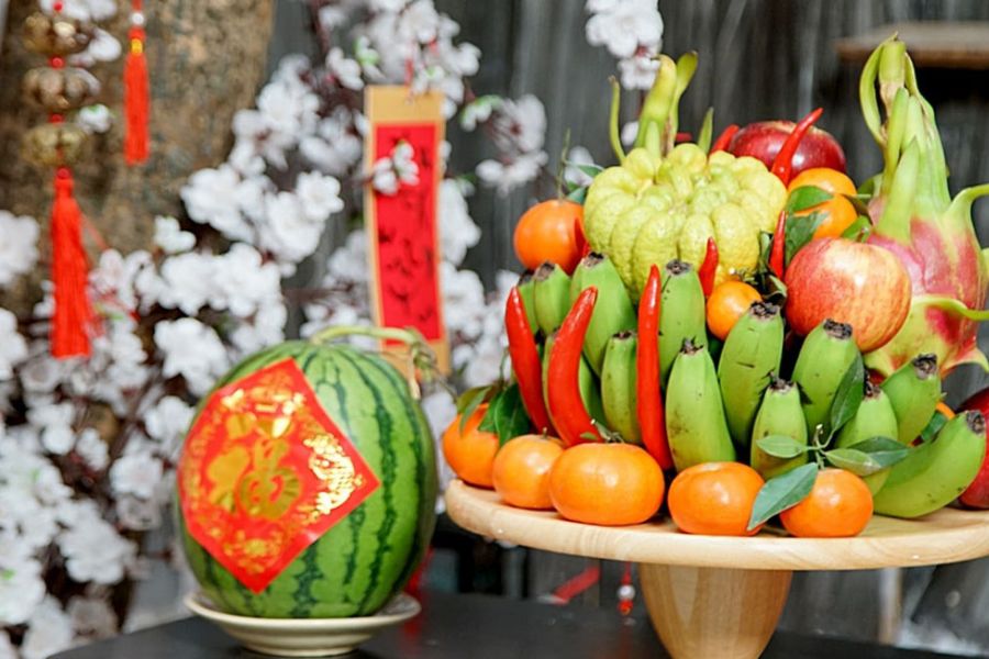 Những loại trái cây có thể kể đến như chuối, táo, lê, bưởi, cam…thể hiện sự cầu xin về may mắn và thịnh vượng.
