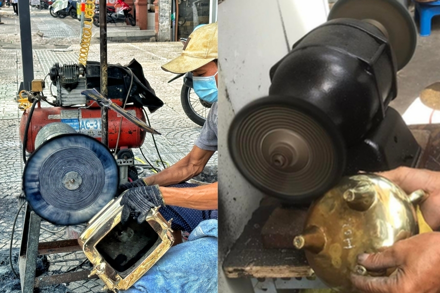 Sử dụng bột và máy đánh bóng chuyên dụng là giải pháp tối ưu cho lư đồng lớn hoặc bị oxy hóa nặng, khó làm sạch bằng cách thông thường.