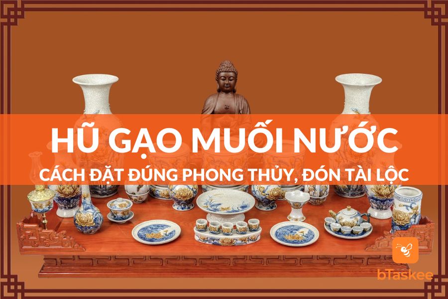 Hũ gạo muối nước là một trong những thành phần quan trọng trong bộ đồ thờ cúng trên bàn thờ. Cùng bTaskee tìm hiểu cách đặt hũ gạo muối nước trên bàn thờ đúng cách để mang may mắn, tài lộc cho gia đình nhé!