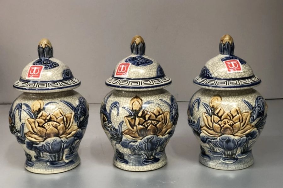 Chúng được đặt sau mâm ngũ quả, trước bát hương theo một hàng ngang. Mỗi hũ cách nhau trong khoảng từ 5 – 8cm.