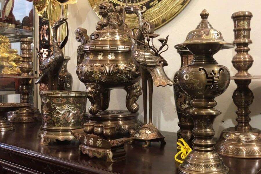Trong phong thủy thì bàn thờ gia tiên của ông bà tượng trưng cho mệnh hỏa, còn đồng lại tượng trưng cho kim. Vì vậy, bạn không nên sử dụng toàn bộ đồ vật thờ cúng trên bàn thờ đều làm bằng đồng mà phải đảm bảo đủ ngũ hành kim, mộc, thủy, hỏa, thổ.