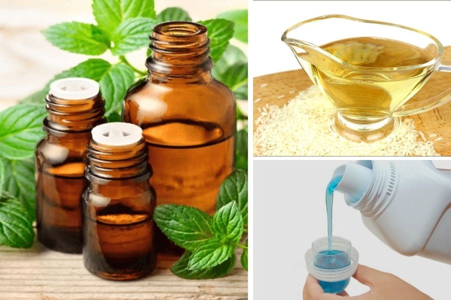 Đây là hỗn hợp đuổi kiến cực kì mạnh, chuẩn bị 1 chai giấm ăn, 3 giọt tinh dầu bạc hà, 1 nắp nước xả vải. Trộn đều hỗn hợp lại với nhau, sau đó đổ trực tiếp vào khu vực kiến làm tổ gần nhà. Đây cũng là một trong những cách đuổi kiến ba khoang rất hiệu quả. Chúng sẽ dời nhà đi nơi khác ngay lập tức.