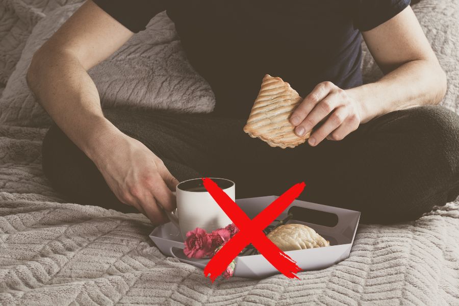 Một lý do phổ biến mà kiến tìm đến và “đóng quân” trong phòng ngủ chính là vì thói quen ăn uống trên giường của bạn. Đặc biệt là các món ăn vặt, bánh ngọt, thực phẩm chứa đường. Thức ăn rất dễ bị rơi những mảnh vụn và vô tình trở thành món ăn “khoái khẩu” cho kiến và dẫn chúng đến phòng bạn.