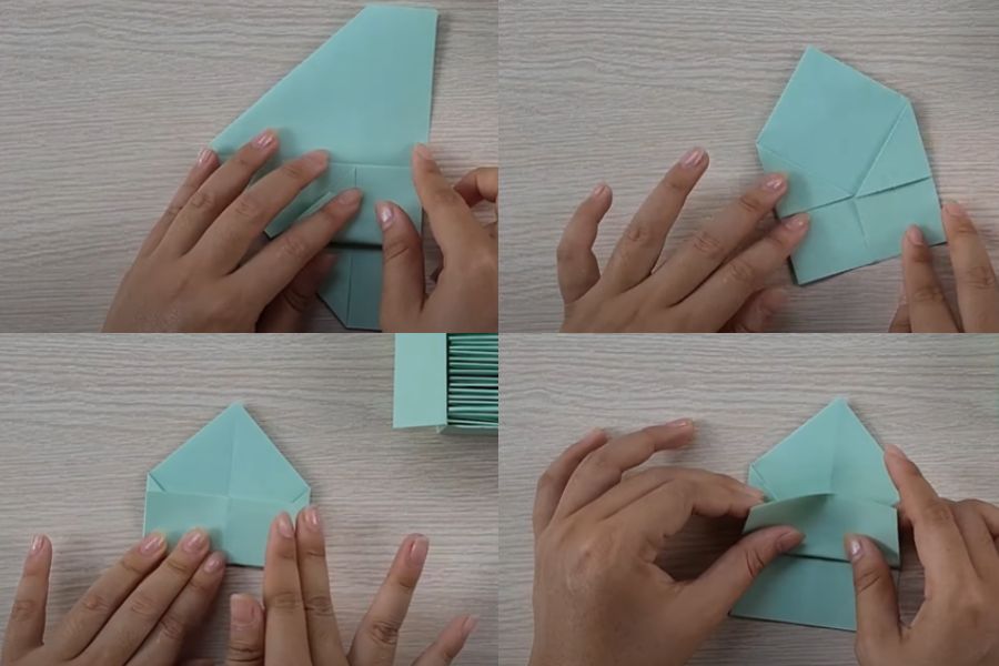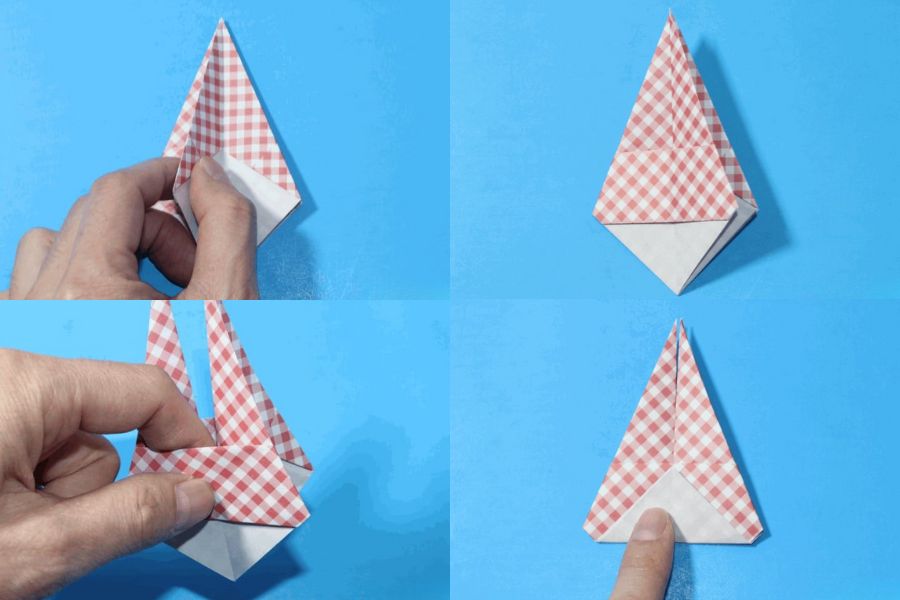 Bước 5: Gấp 2 mép ở dưới đáy các tam giác