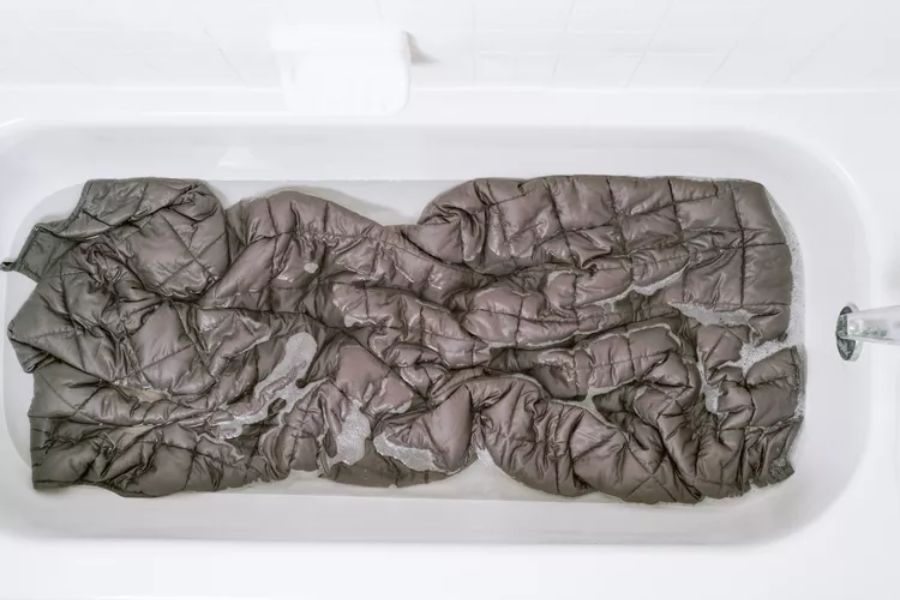 - Bước 3: Đổ nước sạch lên chăn để xả các chất tẩy rửa cùng với bụi bẩn, lặp lại quy trình nhiều lần cho đến khi chăn sạch hoàn toàn và không còn dính xà phòng.