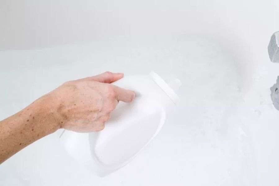 Bước 3: Đổ xà phòng hoặc các chất tẩy rửa vào khoang, chỉ nên sử dụng lượng ít chất tẩy rửa nhẹ nhé. Đặc biệt không nên dùng các loại tẩy rửa có chứa các chất hoá học với khả năng tẩy mạnh vì sẽ tác động trực tiếp đến chất lượng chăn điện.