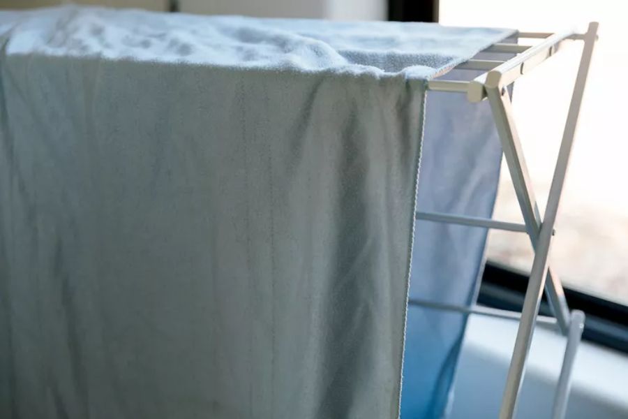 - Bước 4: Cuối cùng thì đem chăn điện phơi ra ngoài trời, khu vực có gió thoáng mát, tránh ánh nắng trực tiếp của mặt trời. Nên dùng tay vắt nhẹ nhàng trước đó để chăn nhanh khô hơn nhé!