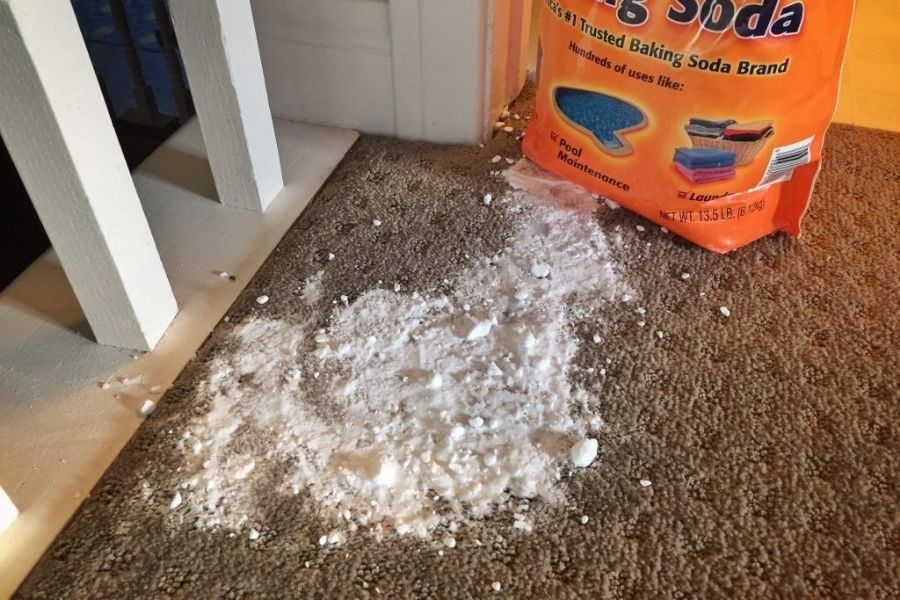 Cách 1: Đối với thảm có cách vết bẩn mới, bạn nên vệ sinh ngay lập tức để tránh khó vệ sinh về sau. Cho trực tiếp bột baking soda lên vết bẩn, giữ từ 5 đến 10 phút rồi sử dụng máy hút bụi hút sạch bụi bẩn.