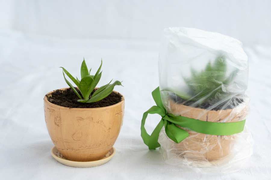 Chú ý: Bạn tuyệt đối không được đặt chậu cây dưới ánh nắng mặt trời. Việc tiếp xúc với ánh nắng mặt trời sẽ làm cho cây bị héo bởi nhiệt độ được tích tụ trong túi nilon.