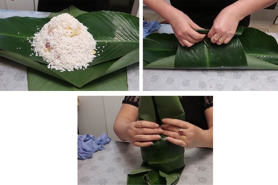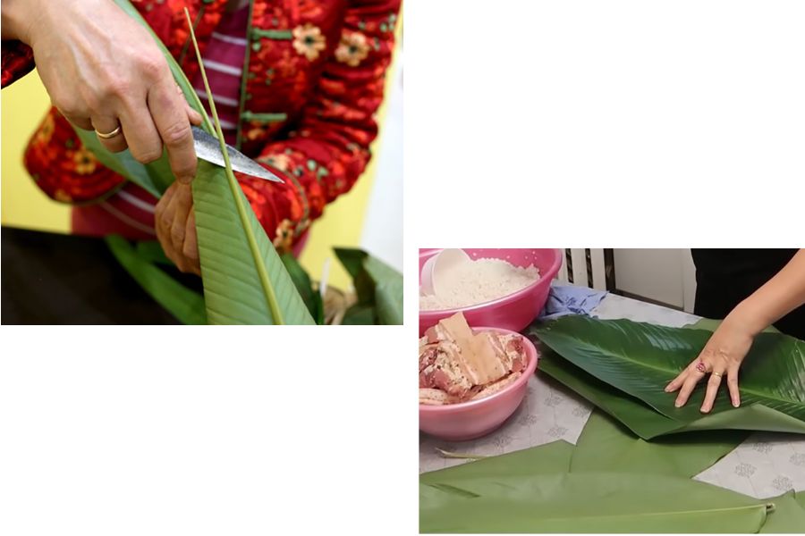 Hướng dẫn cách gói bánh chưng bằng sống lá dong đơn giản và chi tiết: