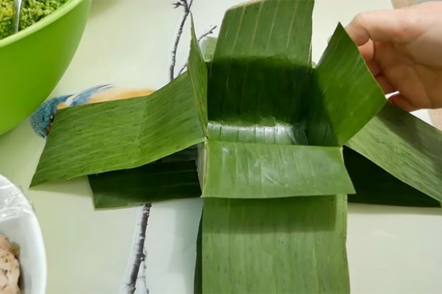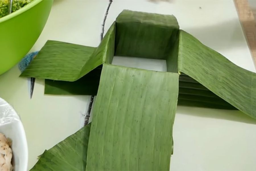 Bước 1: Xếp lá dong