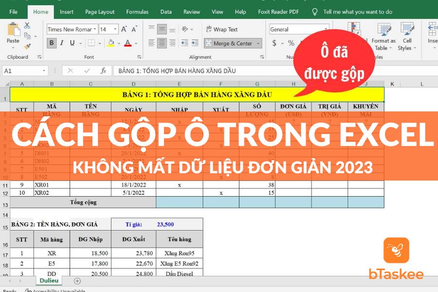 Hướng dẫn cách gộp ô trong Excel không làm mất dữ liệu