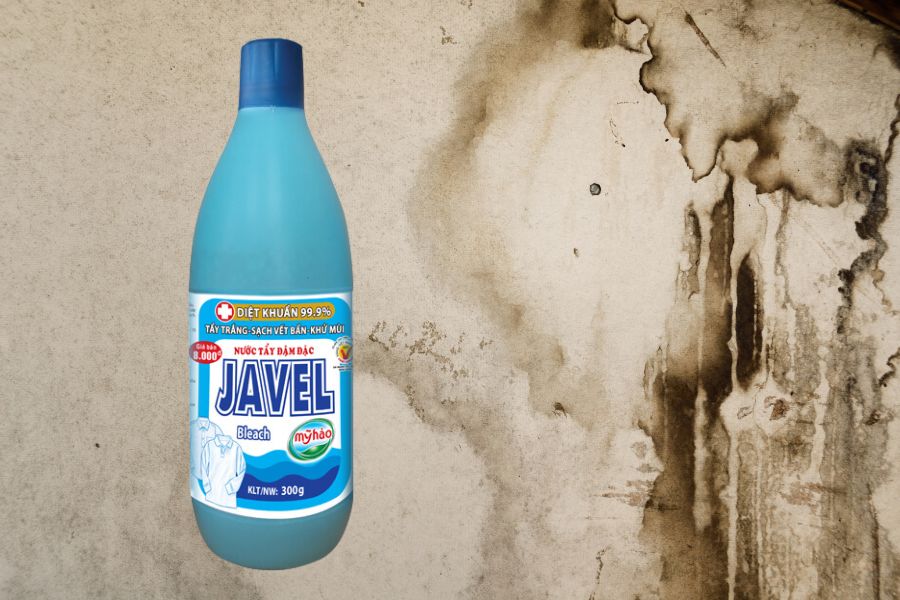 Pha nước Javel với nước sạch theo tỷ lệ 1 phần nước Javel và 5-10 phần nước sạch. Sử dụng bàn chải mềm hoặc vải mềm thấm đều nước Javel đã được pha lên bề mặt tường bị ố vàng.