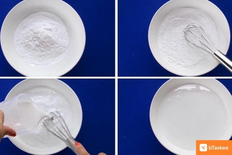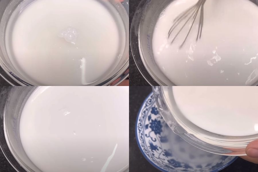 - Khuấy đều bột bằng đũa cho đến khi hoàn toàn tan, sau đó có thể lọc qua rây hoặc vải để gỡ bỏ những cục bột.