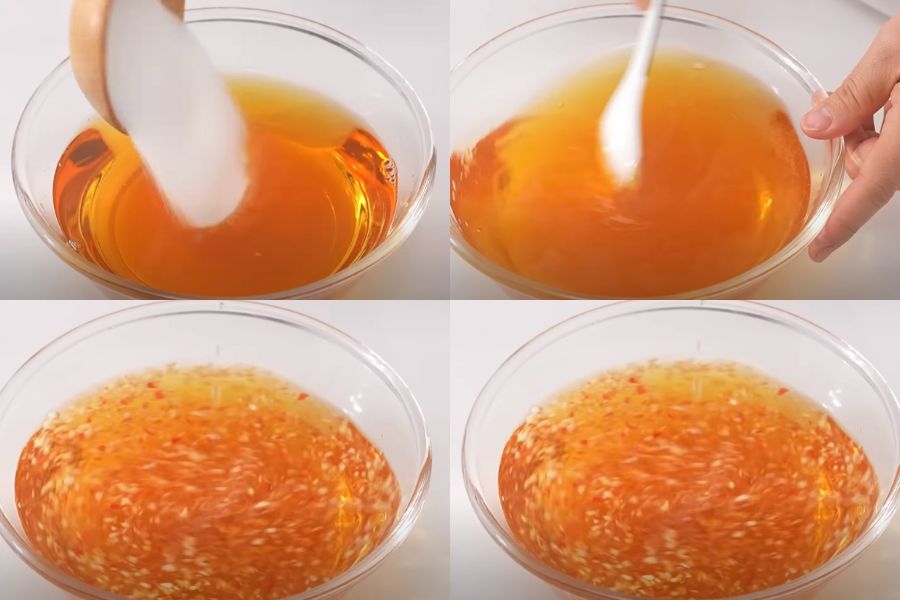 - Khuấy đều cho đến khi hỗn hợp hoà tan.