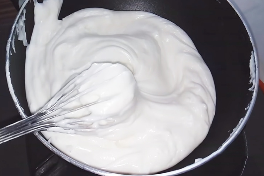- Khuấy đều liên tục đến khi bột đặc thì tắt bếp.