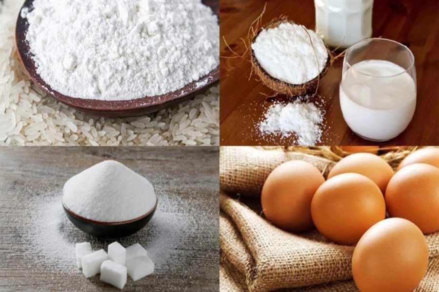 - Trộn đều hỗn hợp bột gạo, bột nếp và bột năng cùng 1 thìa cà phê vani.