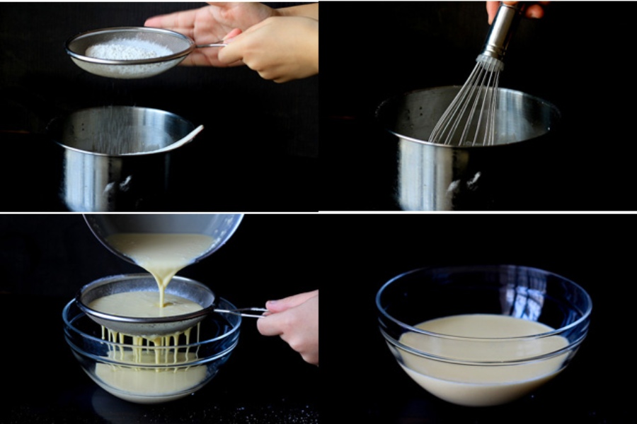 - Pha 60ml sữa đặc và 200ml sữa tươi không đường vào âu sạch.