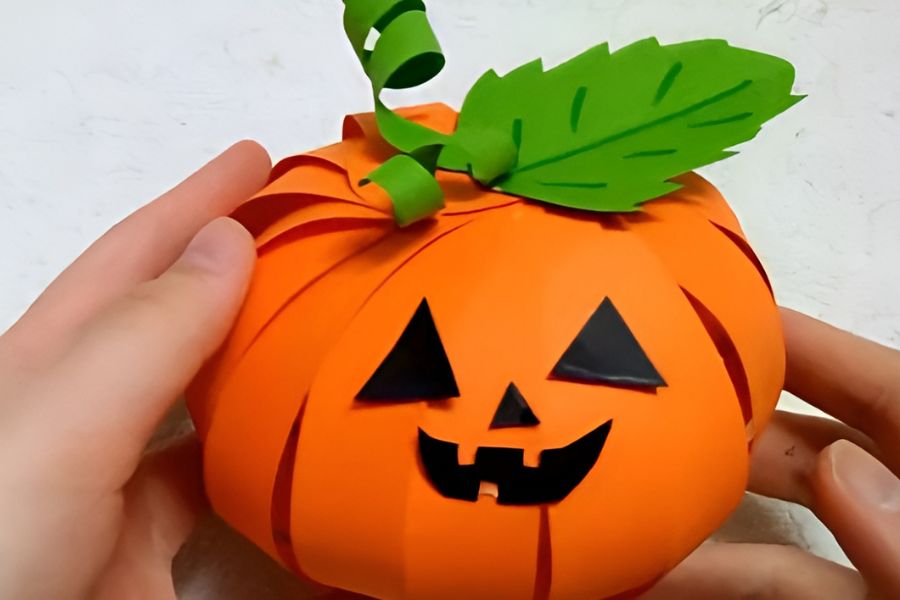 Cách làm bí ngô Halloween bằng giấy và dây lò xo