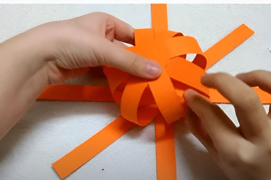 Cách làm bí ngô Halloween bằng giấy và ruy băng