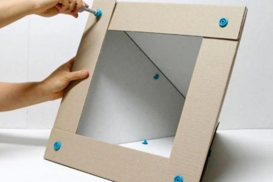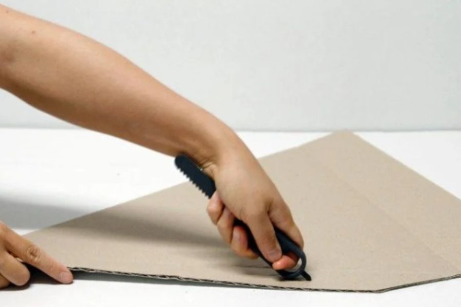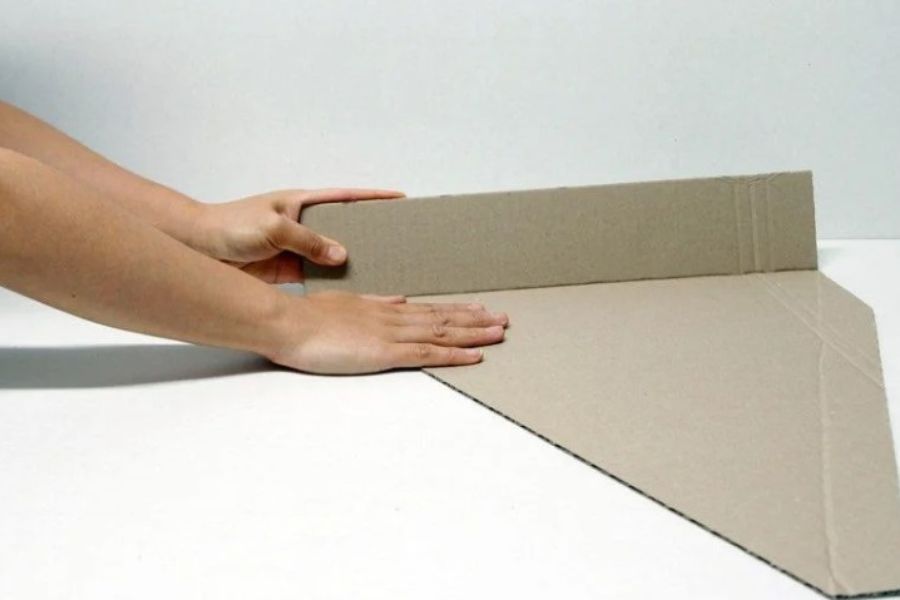 Bước 1: Sử dụng dao rọc giấy, thước kẻ để cắt thùng carton thành những tấm bìa có kích thước và hình dáng như trong ảnh minh họa.
