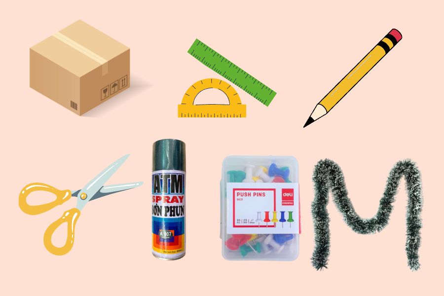 Trước khi tiến hành làm cây thông để trang trí giáng sinh bạn cần chuẩn bị những dụng cụ sau đây: