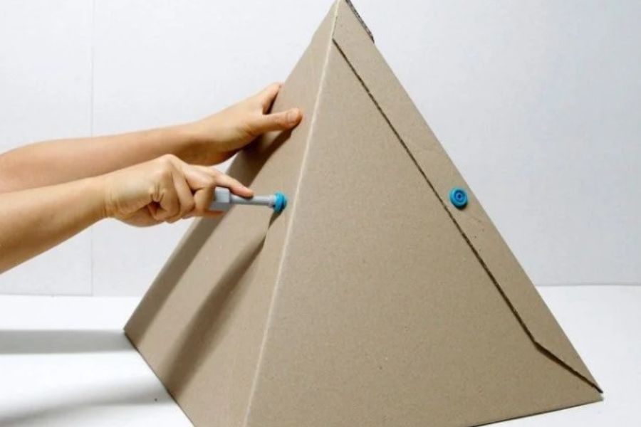 Bước 2: Gắn các tấm bìa thành một khối có chóp như hình.